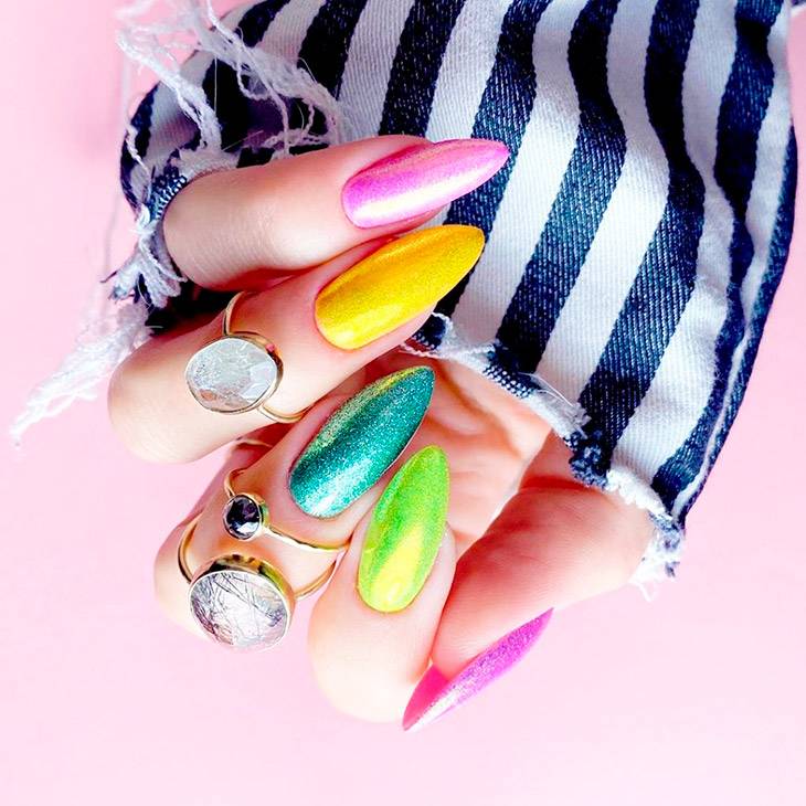 Можно наносить мазки параллельно друг другу на всех ноготках, а можно расположить их в хаотичном порядке. Тут уже все будет зависеть от вашего настроения или ваших пожеланий мастеру маникюра.