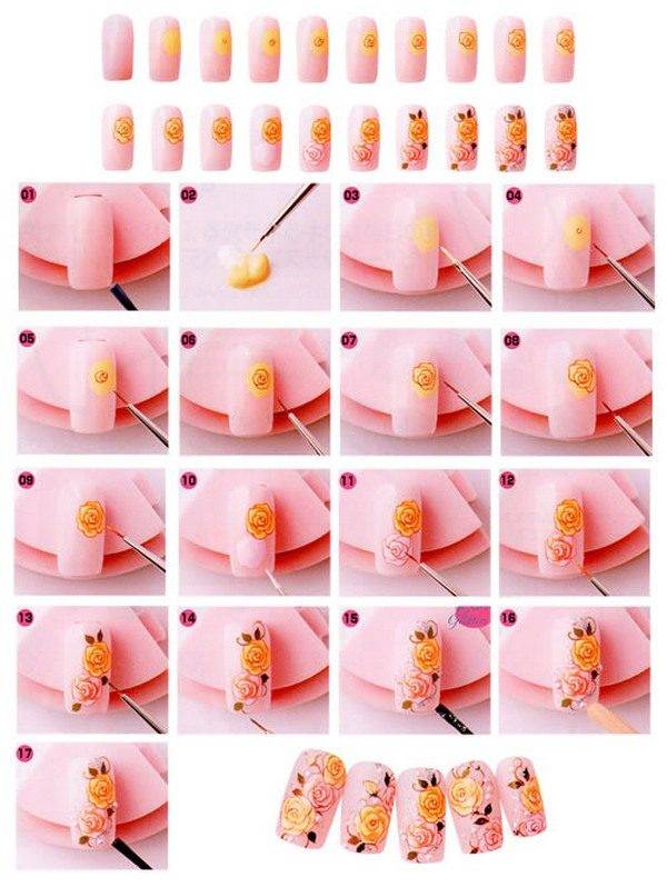 Рисунки на ногтях акриловыми красками пошагово для начинающих: