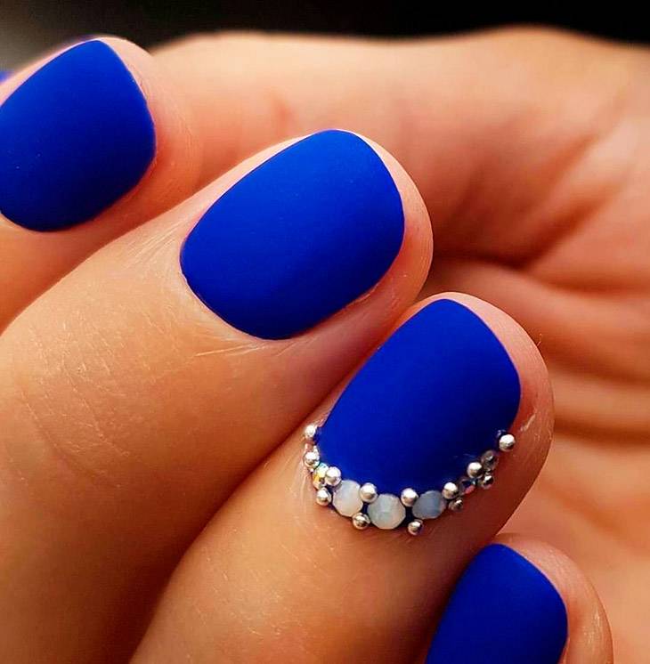 4. Если планируете использовать большое количество страз, то сосредотачивать их лучше на одном ноготке. Если желаете украсить каждый ноготь, то не нужно брать более трех страз.
