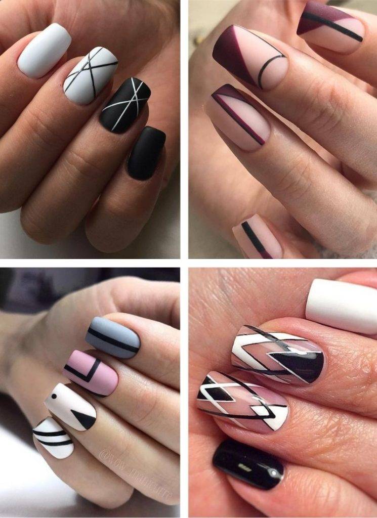 - комбинированные идеи нейл-арта с ансамблями двух и больше техник, к примеру, френча, лунного, геометрии; полосочек, негативного пространства, абстракции и т.д.