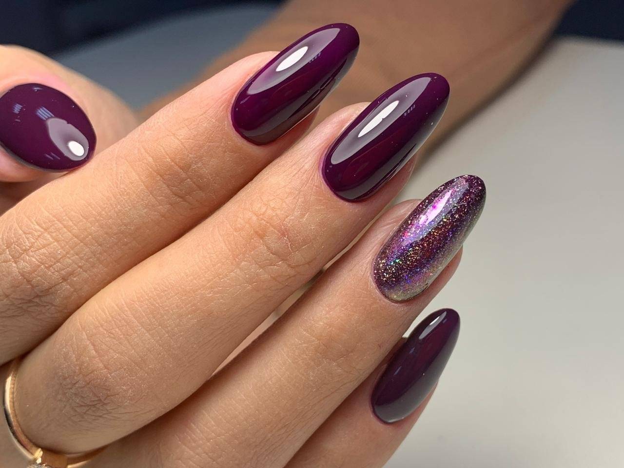 Баклажановый — идеальный цвет для осени. Это насыщенный темный фиолетово-коричневый цвет, который является фантастической альтернативой для женщин, желающих чего-то необычного. Этот цвет легче носить, чем черный, и он не такой мягкий, как розовый и сиреневый. Он не только универсален, но и хорошо сочетается с ногтями разной длины и формы