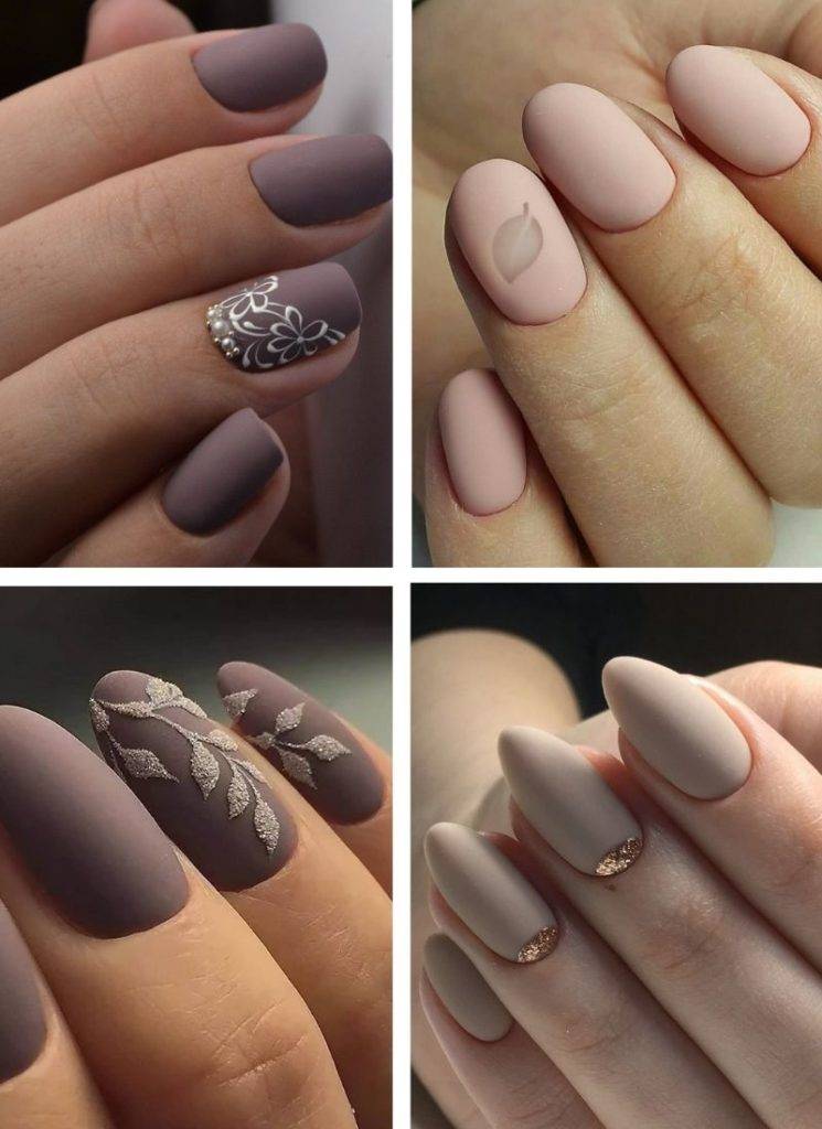 Нежный маникюр 2024 вполне может быть матовым. Особенно эффектно он смотрится на ногтях средней и небольшой длины. Интересно выглядят в матовом исполнении пастельные оттенки, молочные, бежевые, кофейные тона и бледные желтые, лавандовые.