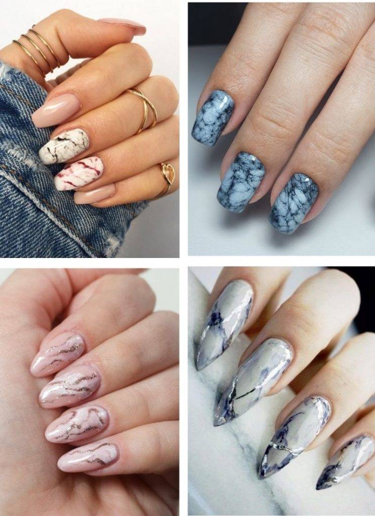 - оригинальные паутинчастые, стемпинг узоры, разводы и мазки на ногтях