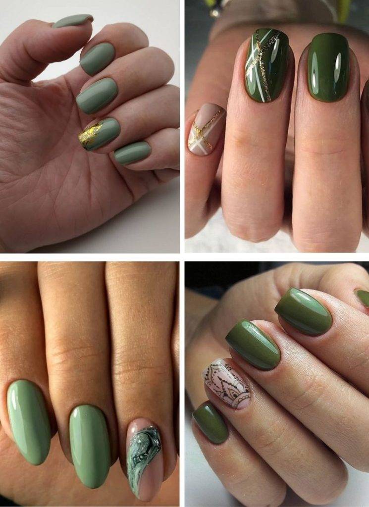 Нейтральный цвет, хорошо смотрящийся на длинных миндалевидных или овальных ногтях. Оливковый маникюр подойдет обладательницам смуглой и загорелой кожи.