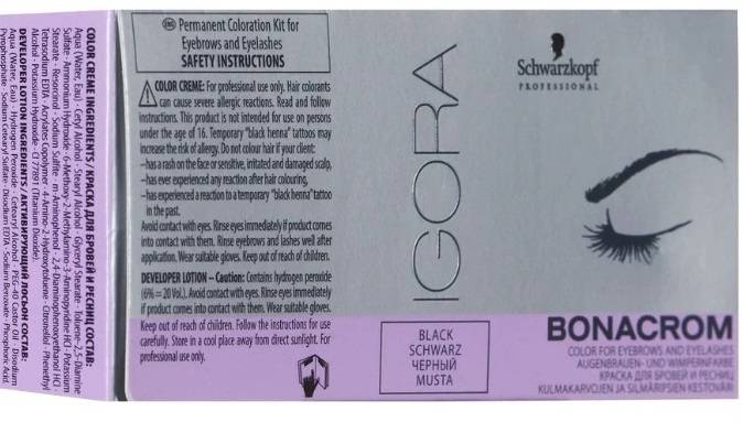 Компания Шварцкопф входит в число ведущих мировых производителей красок. Высоко ценятся и их средства для покраски ресниц. Schwarzkopf предлагает широкий ассортимент насыщенных оттенков. Во все комплекты для покраски ресниц, помимо краски и окислителя, входят также защитные полоски и емкость для смешивания. Производитель утверждает, что стойкость окрашивания его продуктом составляет до 6 недель без утраты яркости. Одного тюбика с краской при среднем показателе расхода хватает до двух лет.