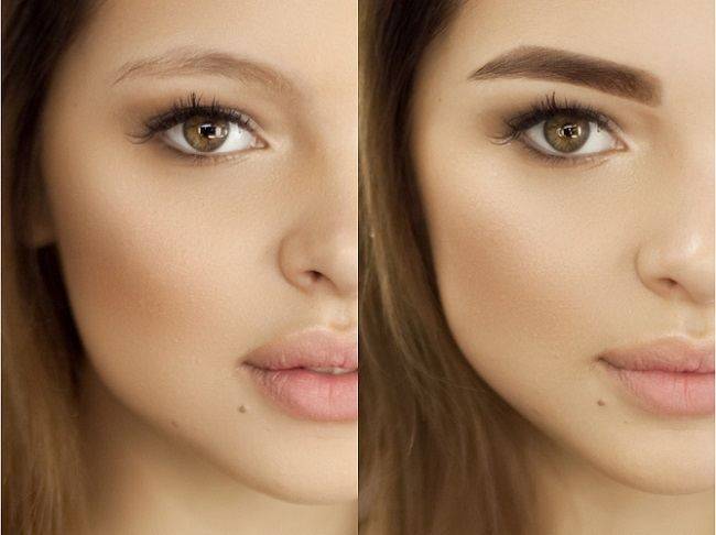 При подборе оттенка краски для бровей нужно обращать внимание на форму бровей. Например, если редкие брови окрашивать в насыщенные тёмные цвета, то это подчеркнёт недостаток волосков на надбровной дуге
