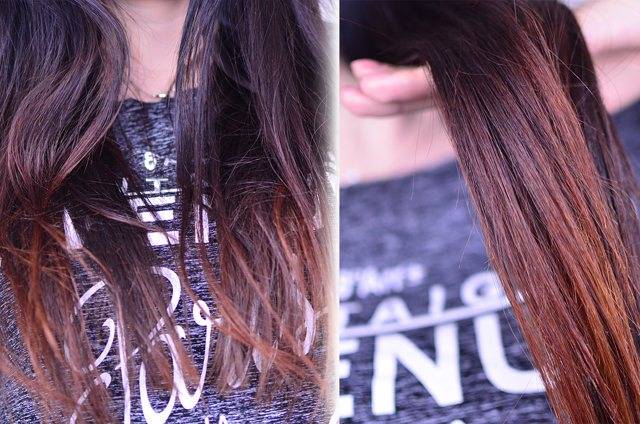 Но, естественно, перед ее использованием мне пришлось осветлить волосы. Я решила окрашивать только кончики, чтобы получить эффект омбре.