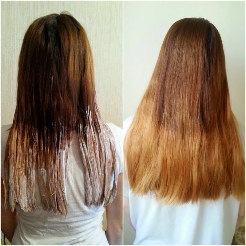 - Но самое главное, что после окрашивания волосы не обломились и не потеряли свой блеск. Вот такого результата я добилась после первого осветления: