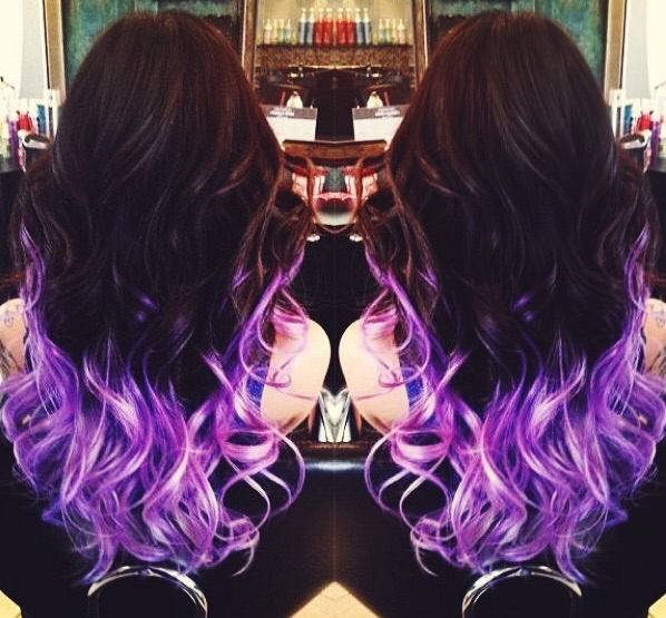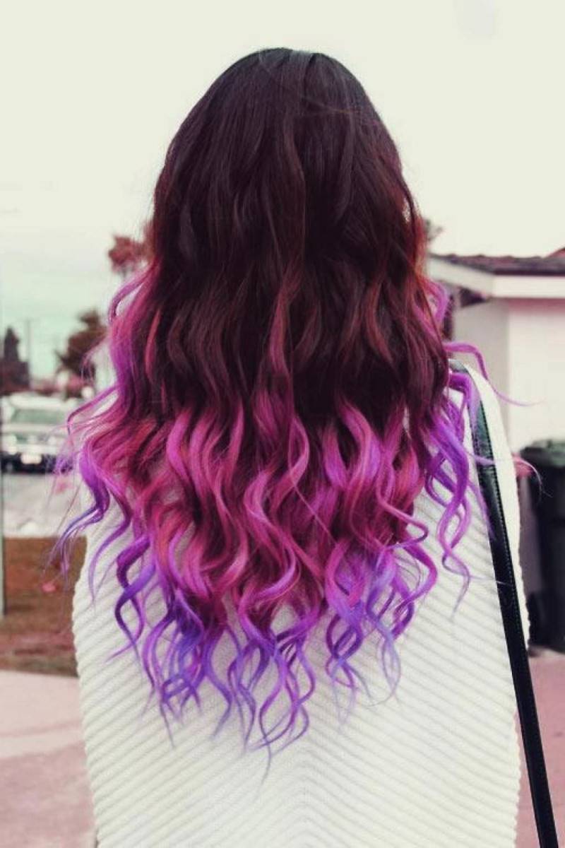 Яркие пряди могут сочетать в себе переход в пару тонов, от фиолетово — сиреневых оттенков до красно — огненных, или же несколько, с плавным переходом в друг друга, цветов.