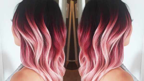В ряде случаев присутствуют плавные перетекания цветов, а в других контрастные. Омбре может отличаться либо резкой границей светлого и темного, либо естественным и ярким броским колором. При использовании нескольких оттенков на темных волосах можно сделать красивый фиолетовый низ, а на светлых – розовый.