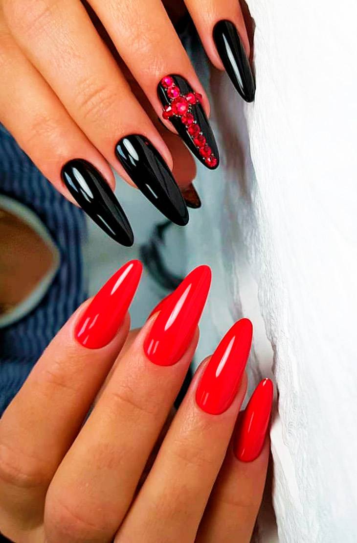 Один из самых экстравагантных, когда в маникюре одна рука красная, другая черная. Это что-то напоминающее «Круэлла-стайл», все чего желает бунтарская душа.