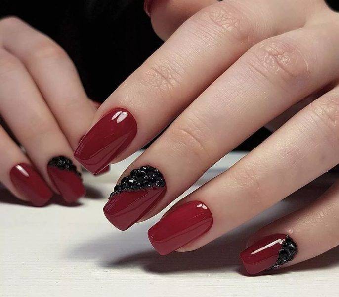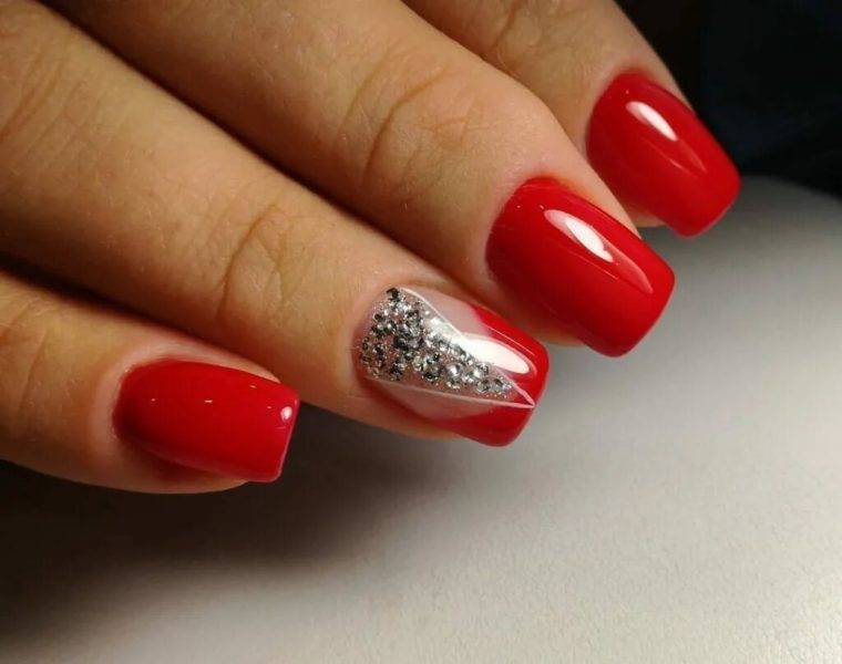 Красный маникюр со стразами