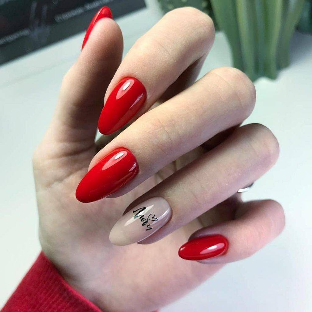 бежевый. Натуральный оттенок сможет уравновесить активность и яркость красного, сделать маникюр более спокойным. Такое сочетание можно адаптировать для ежедневного ношения. В этом случае мы рекомендуем красный использовать как акцент. В то время как база будет бежевой;