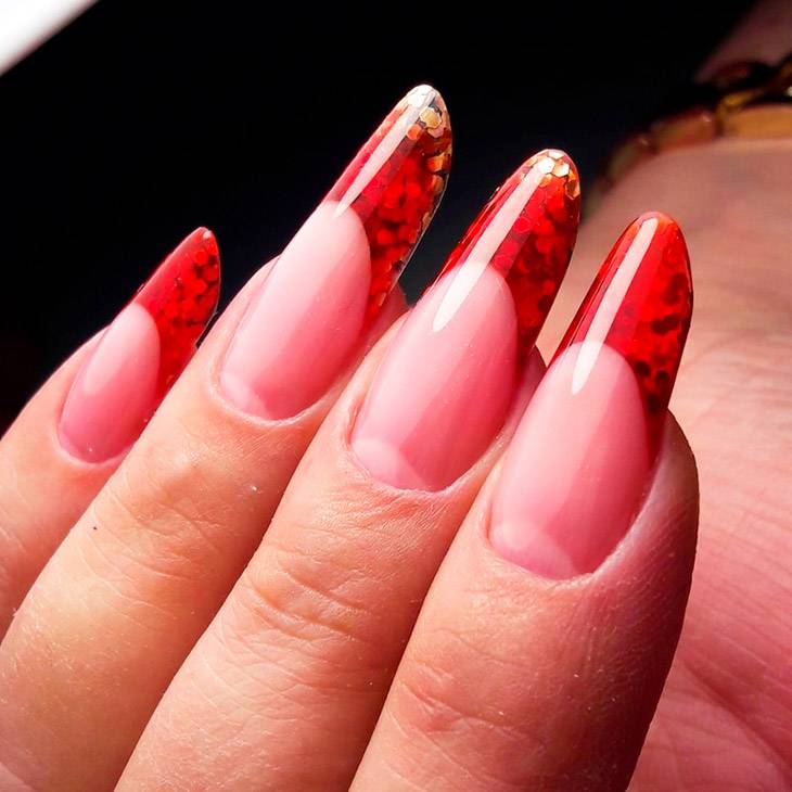 Один из самых гламурных и женственных вариантов маникюра. Он просто идеально подходит для девушек, которые любят стильные и неординарные аксессуары. Красный – цвет вдохновения и притягательности, который добавит настроения и радости в ваш внешний вид.