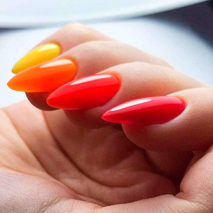 Красные ногти с дополняющим цветом — отличный вариант освежить свой маникюр. В этом сезоне популярен красный с оранжевым. Такой маникюр не только подойдет под любой стиль, но и будет очень эффектно смотреться в повседневной жизни. При этом цвета могут быть разными.