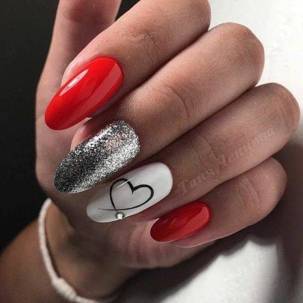 Красный маникюр с сердцем