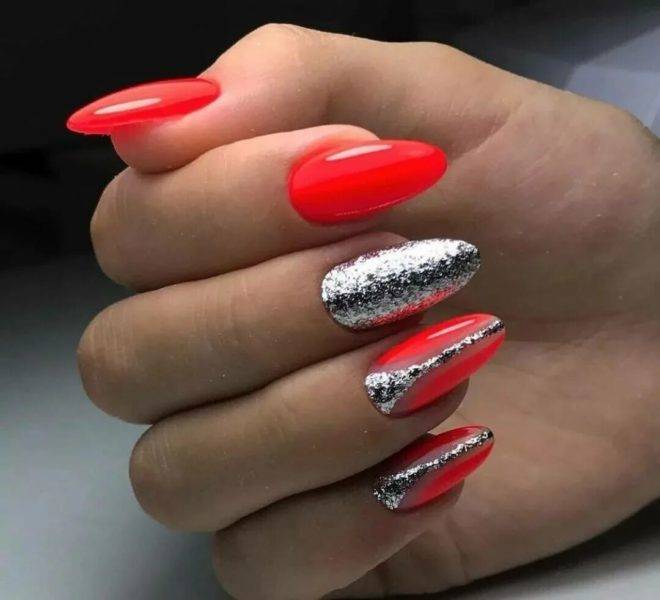 Красный маникюр с серебром