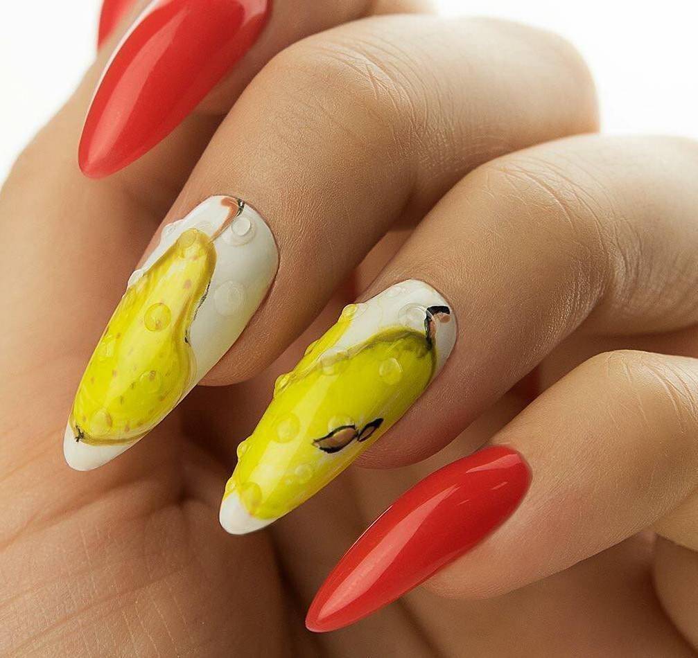 Любительницам яркого маникюра определенно понравится сочетание красного и желтого цвета. Его используют в первую очередь для создания флористического дизайна. Только представьте, насколько красивым, сочным получится рисунок. Также его выбирают для изображения в виде бабочек или фруктов. Конечно же, результат получается невероятно красивым, реалистичным. Поэтому его выбирают очень часто в летнем сезоне или же для путешествий, отпуска на море.