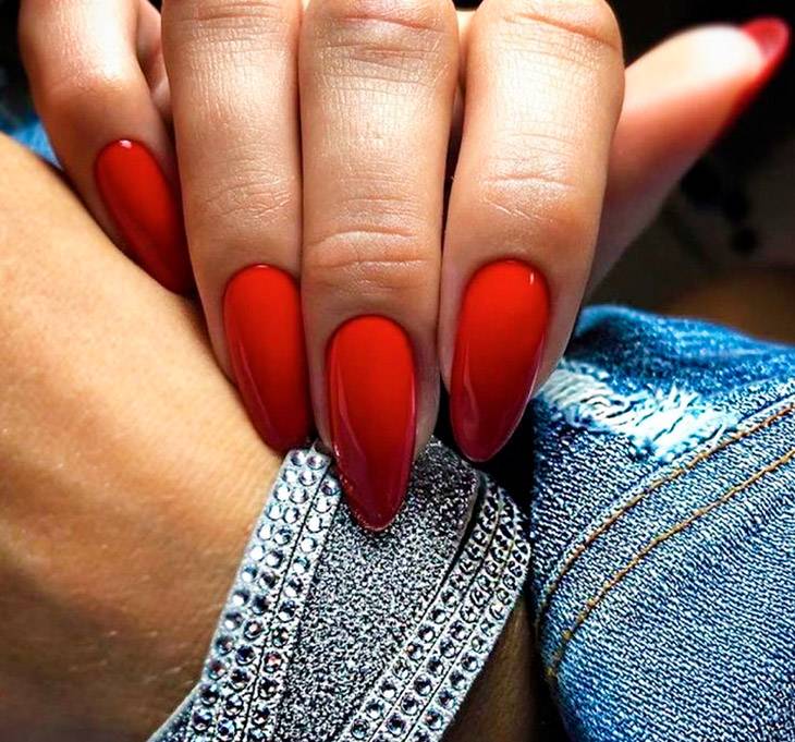 Это один из самых востребованных видов, однотонность всегда в цене, идеально подходит для любого случая. Простота однотонного красивого красного маникюра – вот самое верное решение. Остается только выбрать самый сочный оттенок и вид покрытия: глянцевое или матовое.