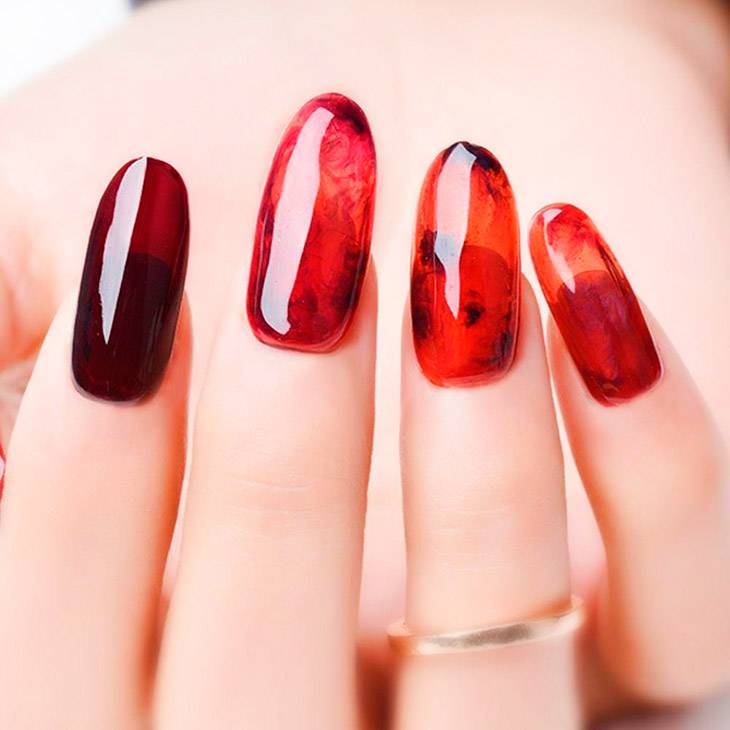 Красный маникюр по мокрому