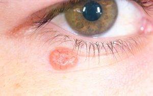 Базалиомы – выпуклые, мелкие, похожие на родинки тёмно-красного цвета пятнышки являются злокачественными опухолями, которые ведут к раку кожи.