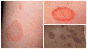 Другое заболевание, вызывающее на коже пятна красного цвета, которые чешутся и не шелушатся – боррелиоз, или болезнь Лайма. Переносчики – иксодовые клещи, и это самая распространённая болезнь, передаваемая кровососущими насекомыми. Помимо кожной сыпи и пятен проявляется общим недомоганием, головными болями, головокружением.