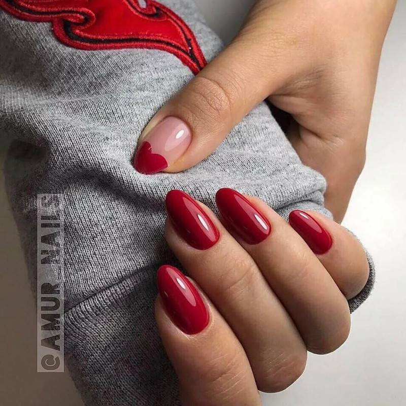 А вот короткие ногти – идеальны для глянцевого однотонного алого маникюра. А также с френчем или рисунками в красных тонах на нейтральных и прозрачных покрытиях.