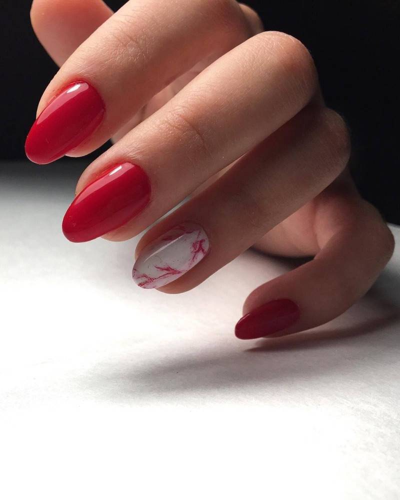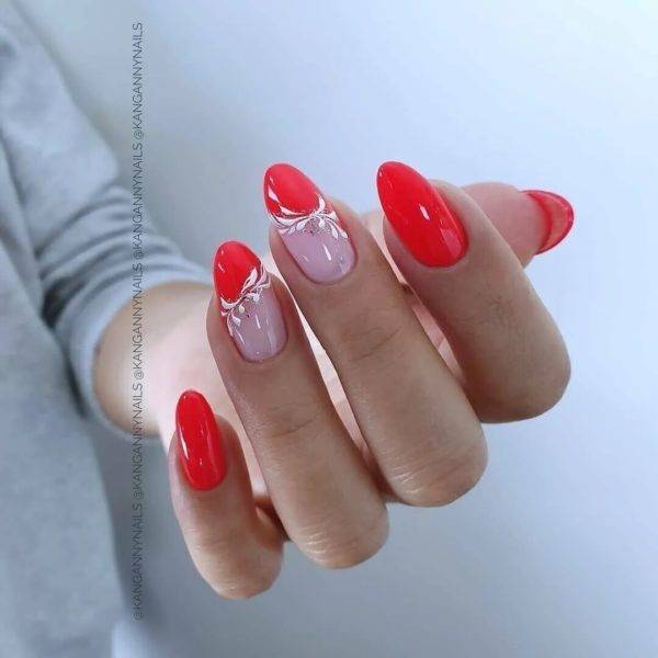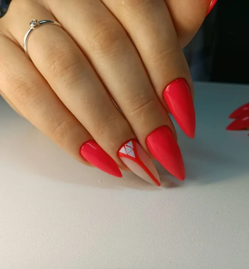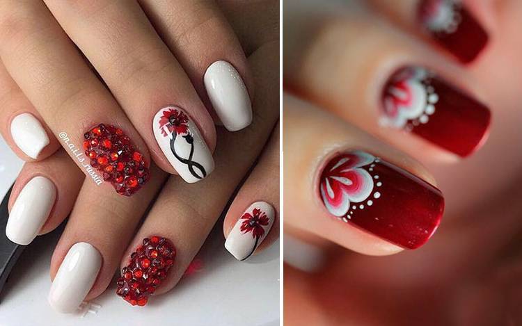 Если вы хотите внести в красный маникюр нотки повседневности, то без белого цвета не обойтись