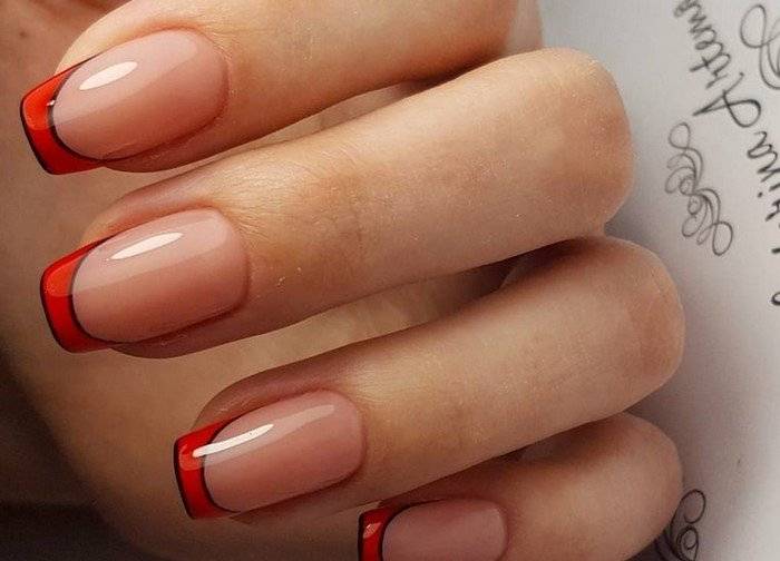 Красивые красные ногти с нюдом. Выбирать нежные нюдовые оттенки стоит для офисного или романтичного маникюра. Они помогают приглушить яркость красной основы, придают дизайну более скромный, нейтральный вид.