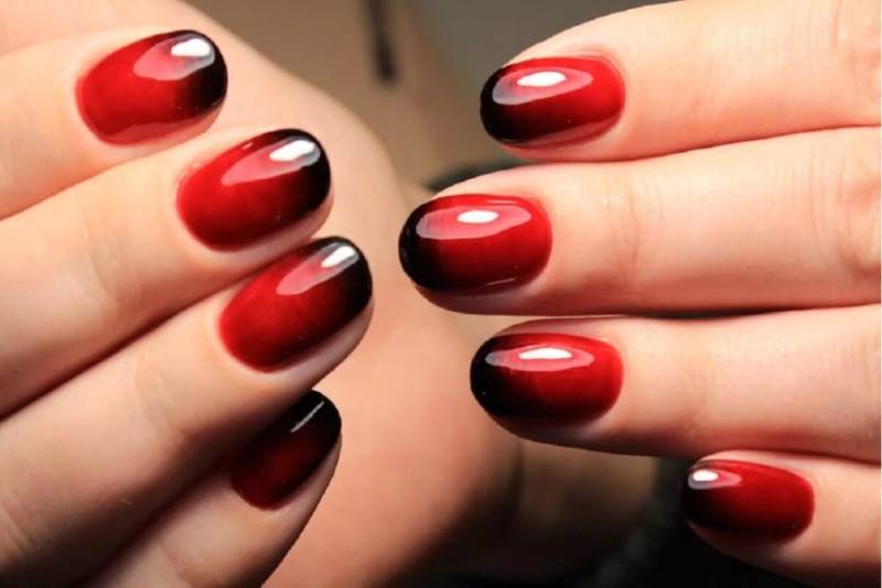 Мода от кутюр и бьюти-индустрия синхронизируются между собой. Градиентные переходы цветов — один из хитов последних сезонов. Ярко смотрится такой нейл-арт в сочетании с глиттерами, шимерами. Градиентные переходы от красного к черному и наоборот располагают не только по вертикали ногтевой пластины, но и по горизонтали, диагонали.