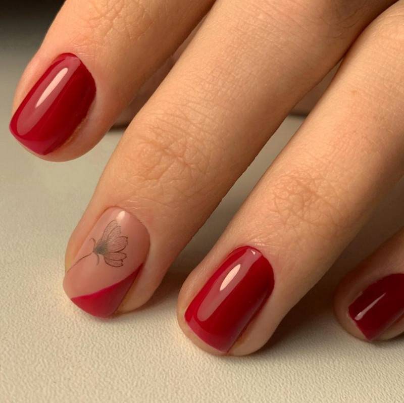 Красный отлично сочетается с минималистическими рисунками, отвлекающими внимание от яркости цвета. Правила нанесения арта на ногти: