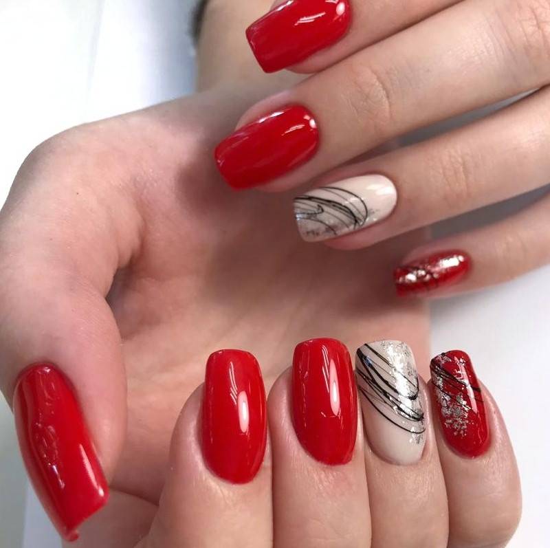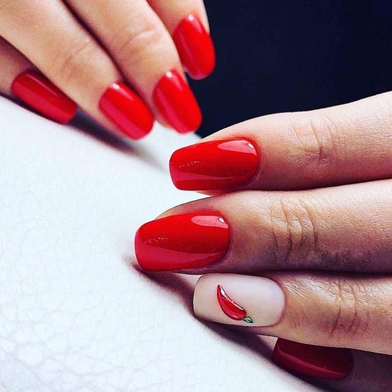 Красный маникюр — отличное и универсальное решение для любого случая. Этот цвет ярок, притягателен и благороден, из сезона в сезон он не теряет актуальности. В зависимости от ситуации, оформить ногти таким лаком можно монохромно или же с добавлением других оттенков, декоративных элементов. На пике популярности всё также остаётся использование матового покрытия в сочетании с глянцевым, геометрические мотивы, омбре.