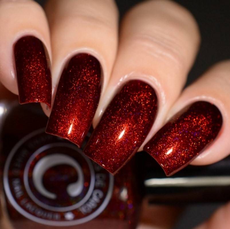- нежелательно наносить покрытие алого оттенка на слишком длинные ногти, это смотрится вульгарно – лучше остановить выбор на тёмных оттенках бордового, вишнёвого или матовом покрытии;