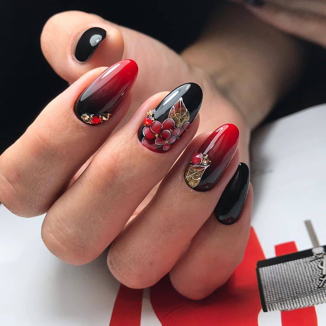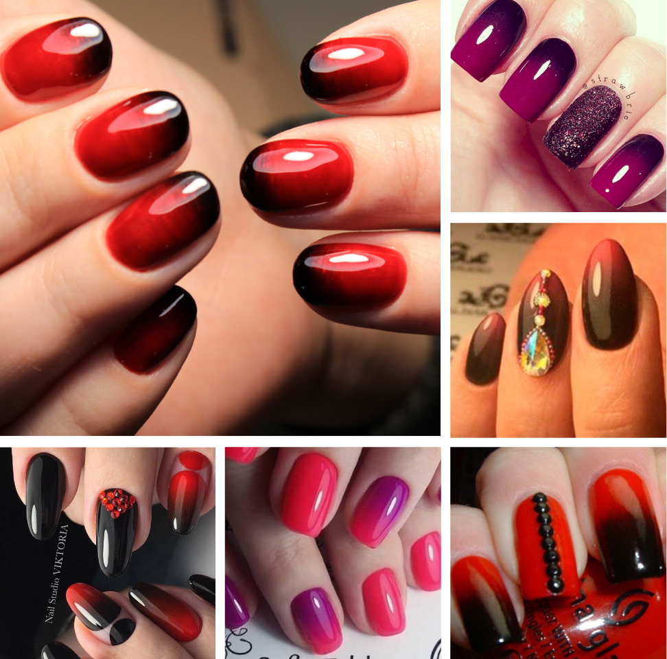 Мода от кутюр и бьюти-индустрия синхронизируются между собой. Градиентные переходы цветов — один из хитов последних сезонов. Ярко смотрится такой нейл-арт в сочетании с глиттерами, шимерами. Градиентные переходы от красного к черному и наоборот располагают не только по вертикали ногтевой пластины, но и по горизонтали, диагонали.