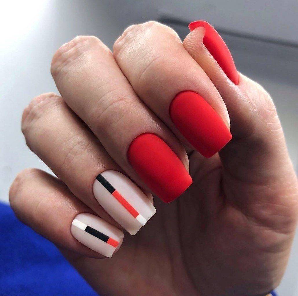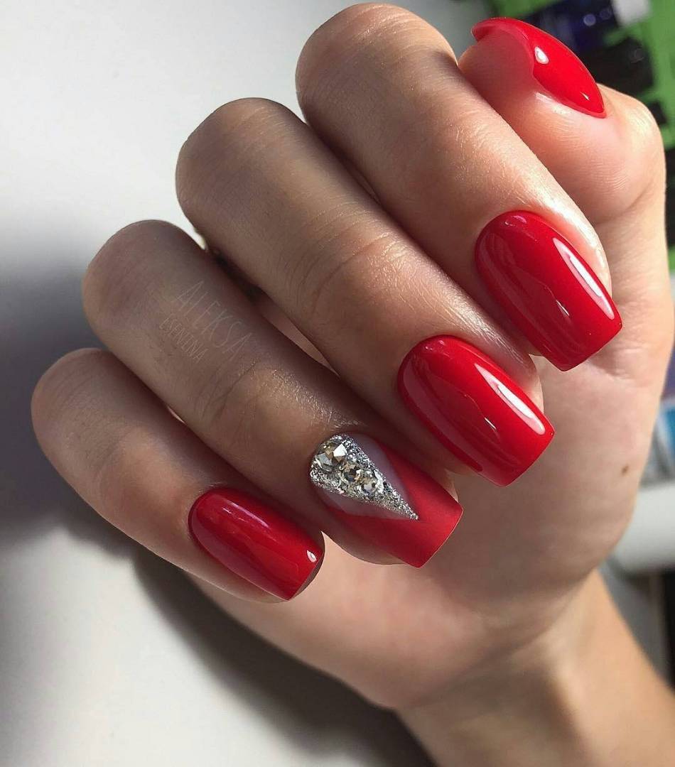Красный маникюр — отличное и универсальное решение для любого случая. Этот цвет ярок, притягателен и благороден, из сезона в сезон он не теряет актуальности. В зависимости от ситуации, оформить ногти таким лаком можно монохромно или же с добавлением других оттенков, декоративных элементов. На пике популярности всё также остаётся использование матового покрытия в сочетании с глянцевым, геометрические мотивы, омбре.
