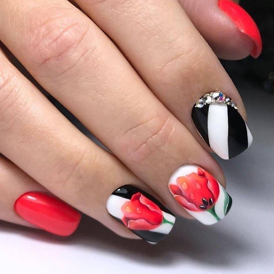 Неудивительно, что у сочетания этих цветов так много поклонниц. Разнообразие декора и техник позволят воплотить самые яркие фантазии и по-настоящему влюбиться в свои ноготки! Черный с красным цвета создадут превосходный дуэт в любом дизайне маникюра.