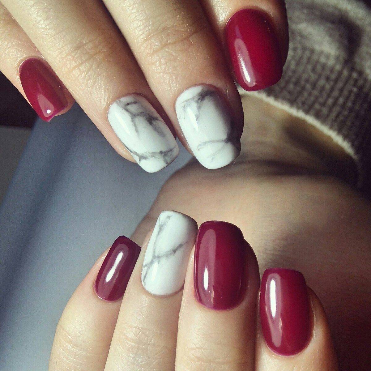 Белый цвет используется в качестве фона для нанесения флористики, геометрии, мраморного декора, абстракции. Визуально сочетание красного и белого смотрится объемно и насыщенно. Присмотритесь к французскому маникюру, где край ногтя выделен красным цветом, а остальное пространство ногтя окрашено белым цветом.