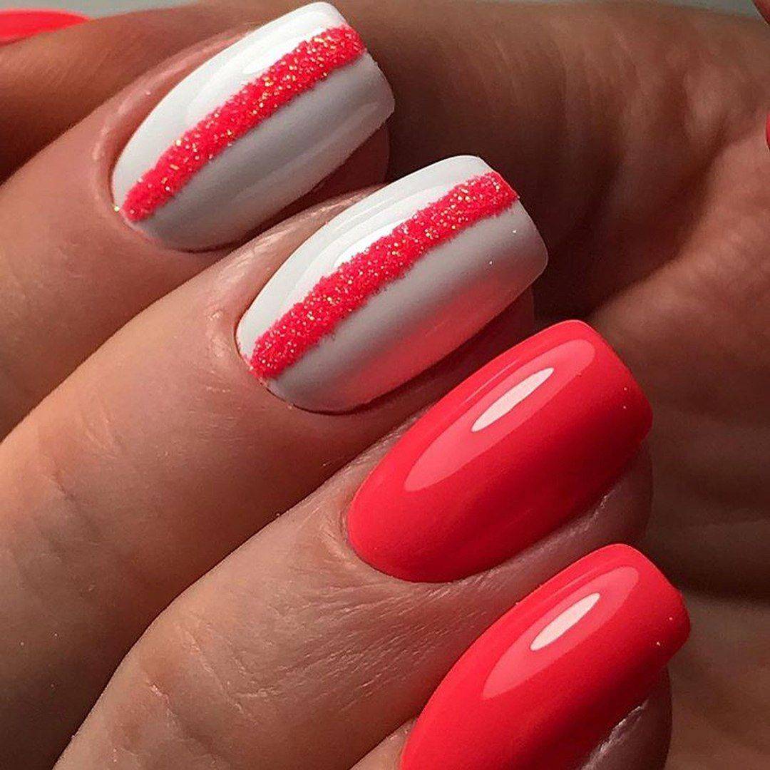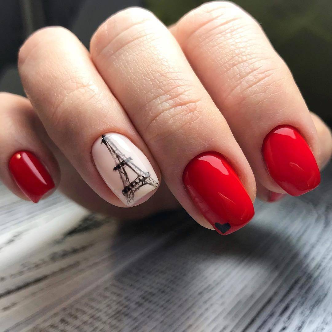 Если вы хотите внести в красный маникюр нотки повседневности, то без белого цвета не обойтись