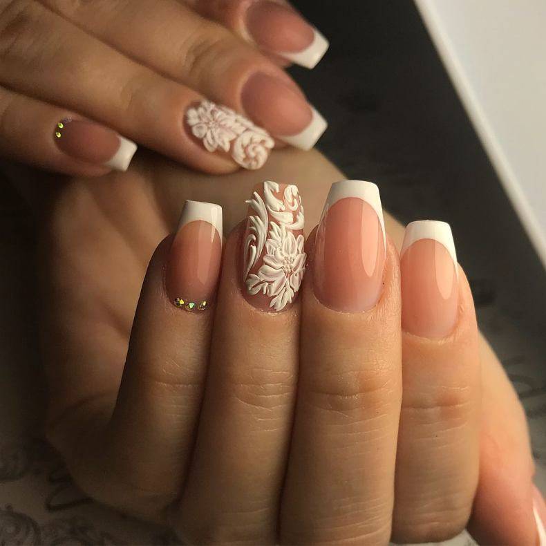 Френч является классикой на все времена. Этот маникюр представляет такую страну как Франция. А это уже говорит о романтизации такого дизайна ногтей. Этот маникюр является уникальным и подходящим под любое свадебное платье, любую форму и длину ногтей.