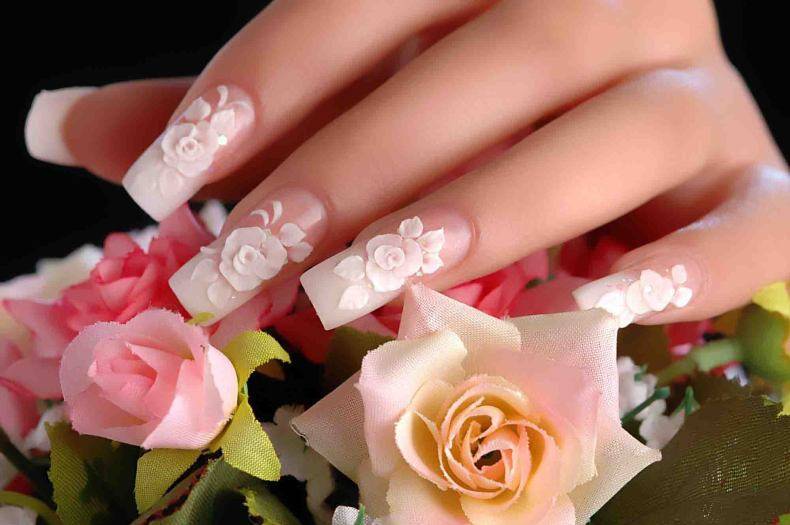 Свадьба ассоциируется не только с кольцами, голубками, белым цветом. Ни одна свадьба не обходится без украшения цветами и композициями из них, бутоньерок в виде цветочных бутонов, и конечно же, великолепного букета невесты. Поэтому использование цветочных мотивов в дизайне свадебного маникюра предсказуемо и уместно.