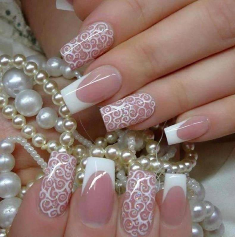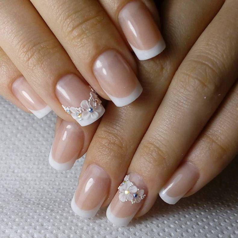 Традиционный свадебный французский маникюр состоит из основных оттенков: белого, розового или бежевого.