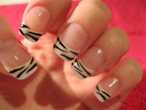 Если ваша свадьба будет не такой как у всех, а обувь или платье невесты, как и прочие детали (пояс, фата или венок) оригинального решения, то «фан-френч (fun-french)» с яркими красками уместен и приветствуется, например, френч с зеброй на самом кончике ногтя.