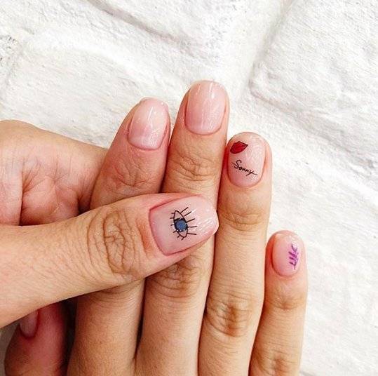 - для тех, кто желает выразить свое настроение или мироощущение на ноготках, мастера предлагают уникальные идеи. И здесь ограничений нет. Можно все: от ностальгии по детству, с мультяшными и сказочными персонажами, до выразительных надписей и графики в стиле настенных граффити.