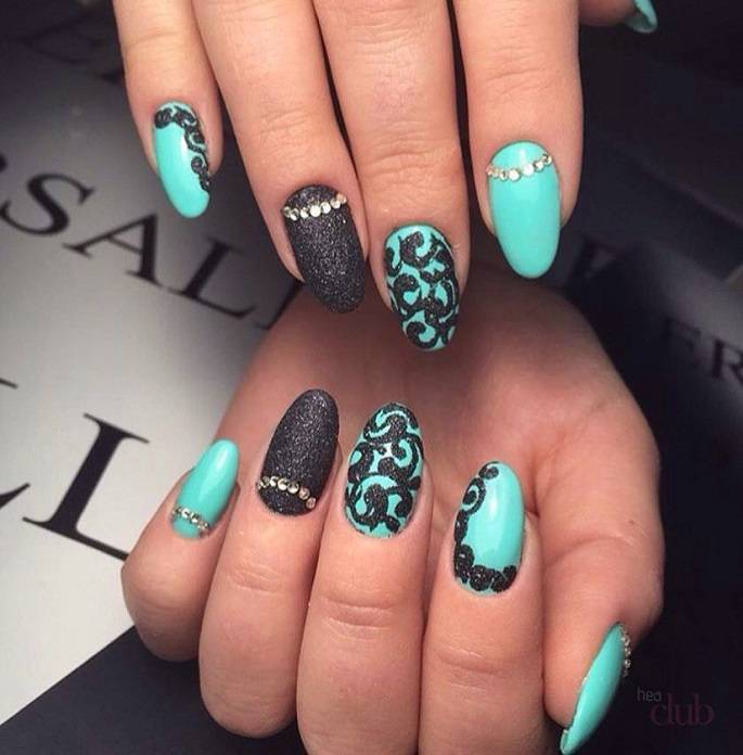 Неоспоримое достоинство черного цвета – сочетание с макияжем и одеждой. Маникюр гармонирует как в основе, так и в актуальных акцентах. На сегодняшний день дополнением будут украшения, которые разбавят его.