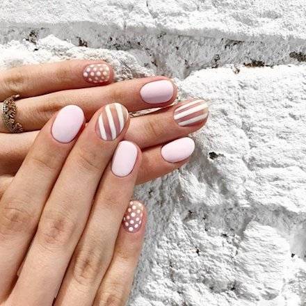 В этом году полосатый маникюр и дизайн в горошек они тоже не обошли вниманием