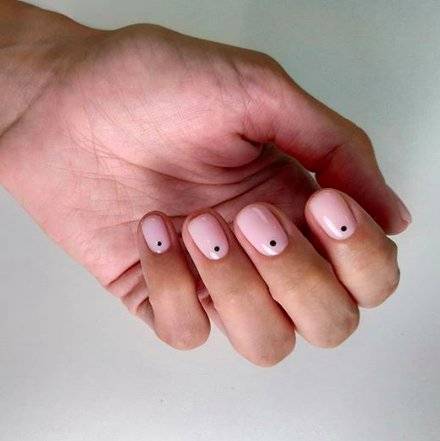 - Далее, в хаотичном порядке расставляются точки. Они могут быть разных размеров. Таким образом, домашний дизайн ногтей будет выглядеть еще необычнее.