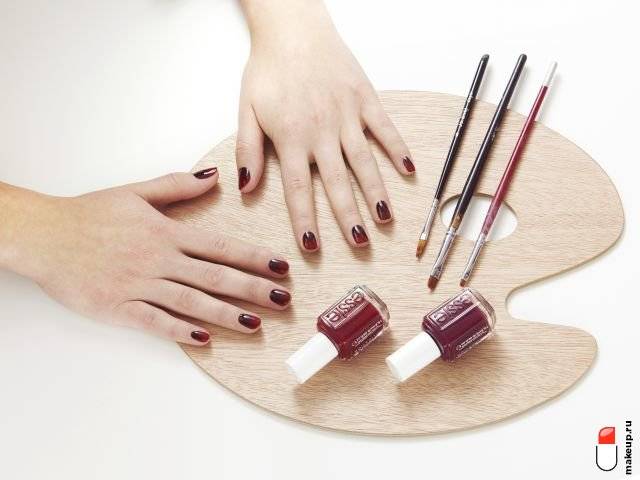 Популярен в 2023 году в виде минимализма. Бордовый, винный и вишневый актуален с длинными и короткими ногтями.
