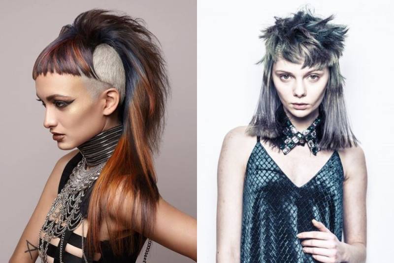 Такая прическа будет хорошо выглядеть и с челкой, и без. Не менее креативными считаются также начесы, выбритые виски или необычные кудри: можно, например, сделать кукольные воздушные кудряшки, начинающиеся от середины головы.