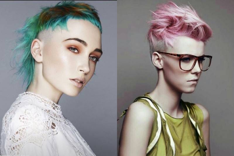 - трафарет: краской на прядях делают определённый рисунок по трафарету, выглядит очень необычно, идеально подходит для коротких стрижек и на выбритых участках головы.