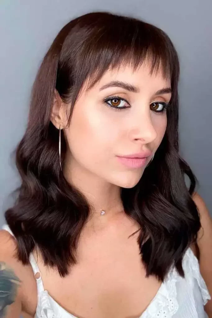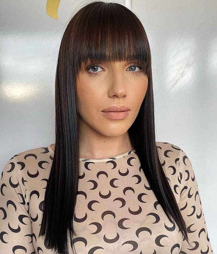 - Прямая челка до бровей добавит вам загадочности и романтичности.